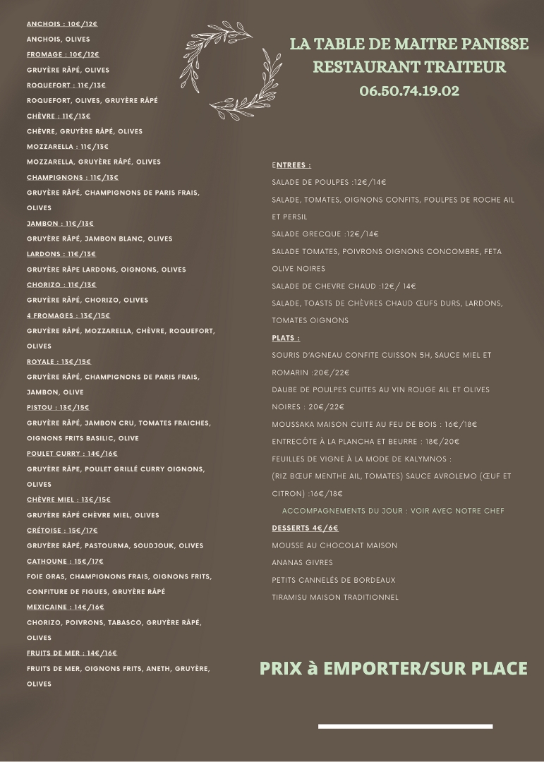 In conclusion, Restaurant La Table De Maître Panisse offers a thoughtfully crafted menu that caters to a wide range of tastes, from wood-fired pizzas to tender meat dishes and irresistible desserts. The balance of flavors, textures, and creative combinations makes it a destination for anyone seeking a memorable dining experience.
